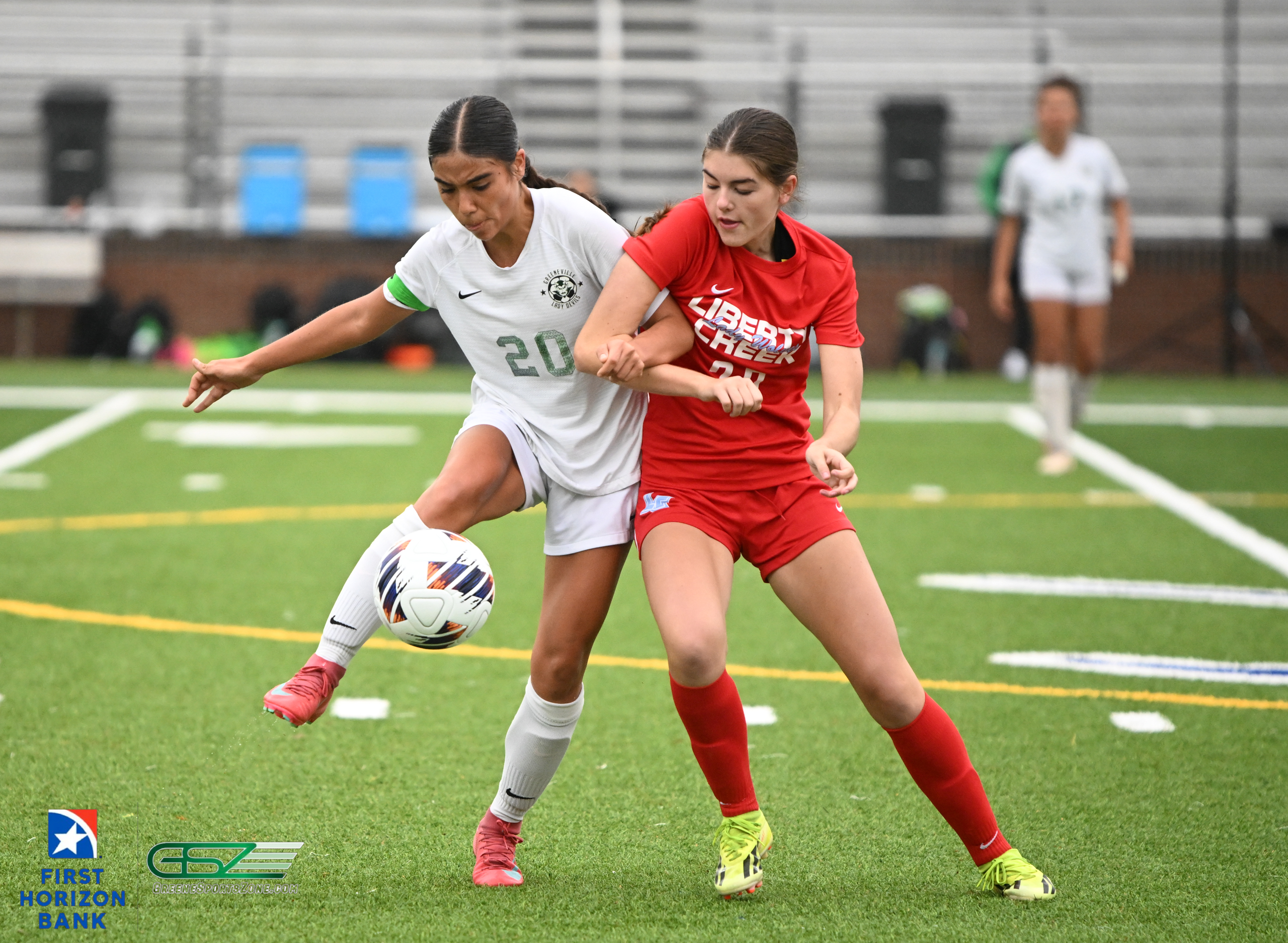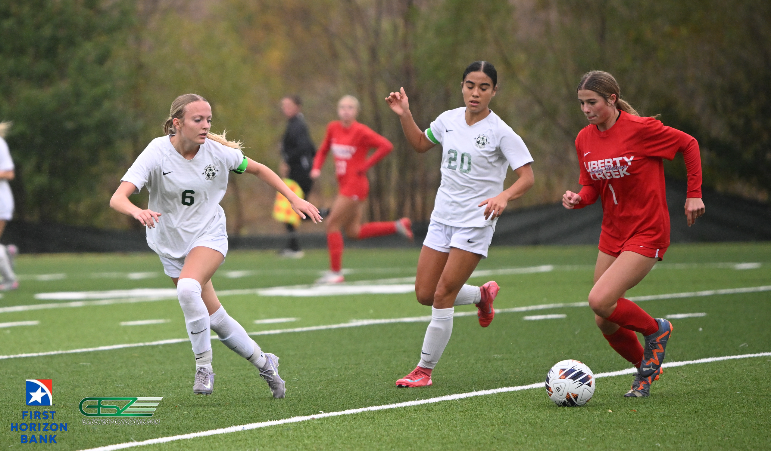 Liberty Creek’s Alyssa Goin worked the ball to the left side of the 18-yard box where she lofted a pass in front of the frame. Greeneville got a touch on the pass but Huan was able to get a shot off from 10 yards and slip it inside the right post for a 1-0 lead.