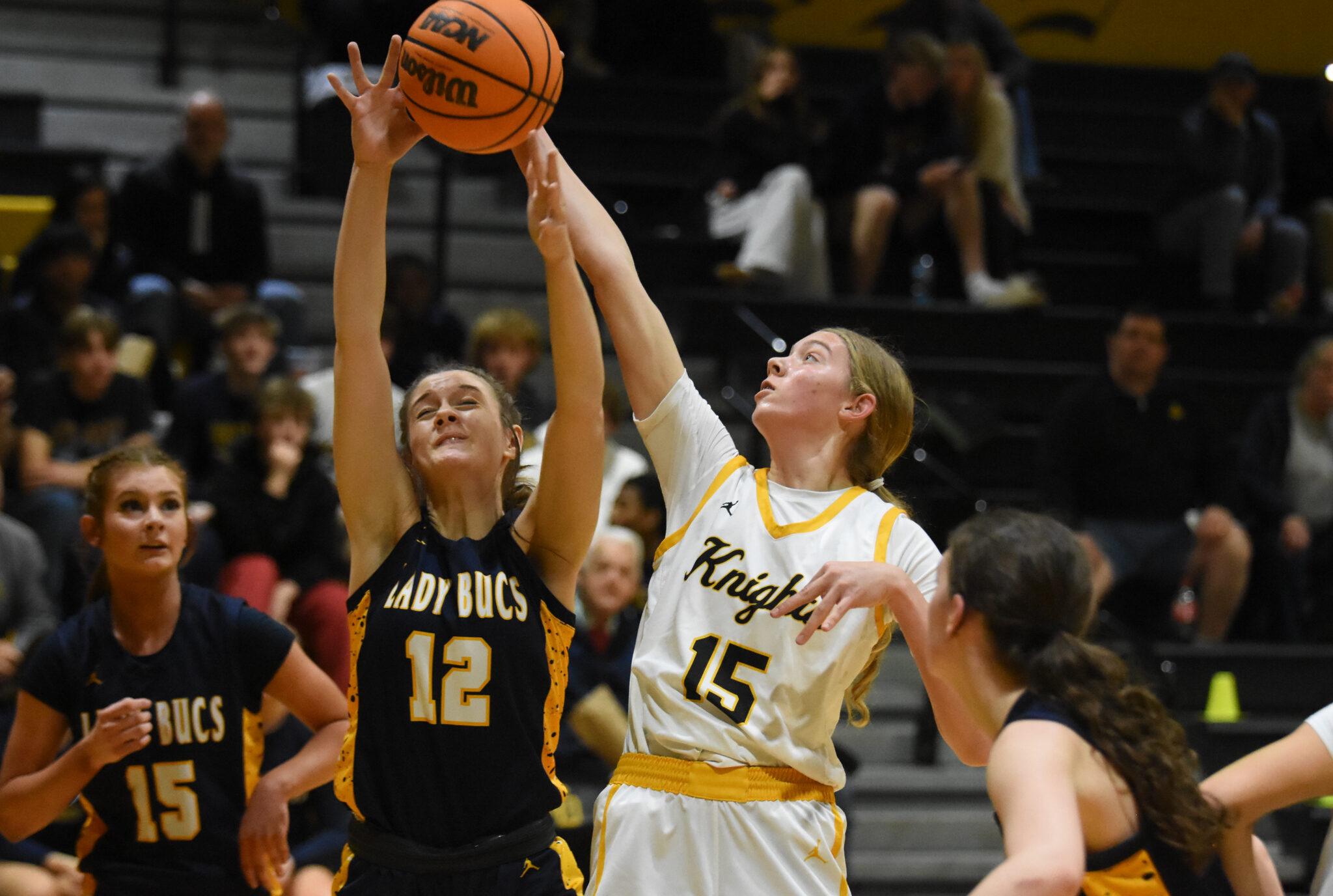 The Lady Knights opened up the game in the second quarter by using their defense to create extra opportunities for the offense. They were not always efficient, and had to sometimes take away possession multiple times to create points, but the stingy defense went six minutes without allowing a field goal. The Lady Knights mixed things up on defense, confusing the Lady Bucs with a 1-3-1 zone and their full-court pressure.