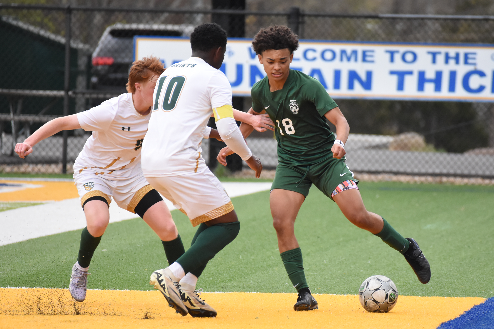 In the 39th minute Greeneville found the back of the net when Holt made a tough solo run up the right side. As he worked into the box the Saints knocked the ball loose, but it found the feet of Wilcox who was trailing the play. He hammered it home from 12 yards to close the gap to 3-1.